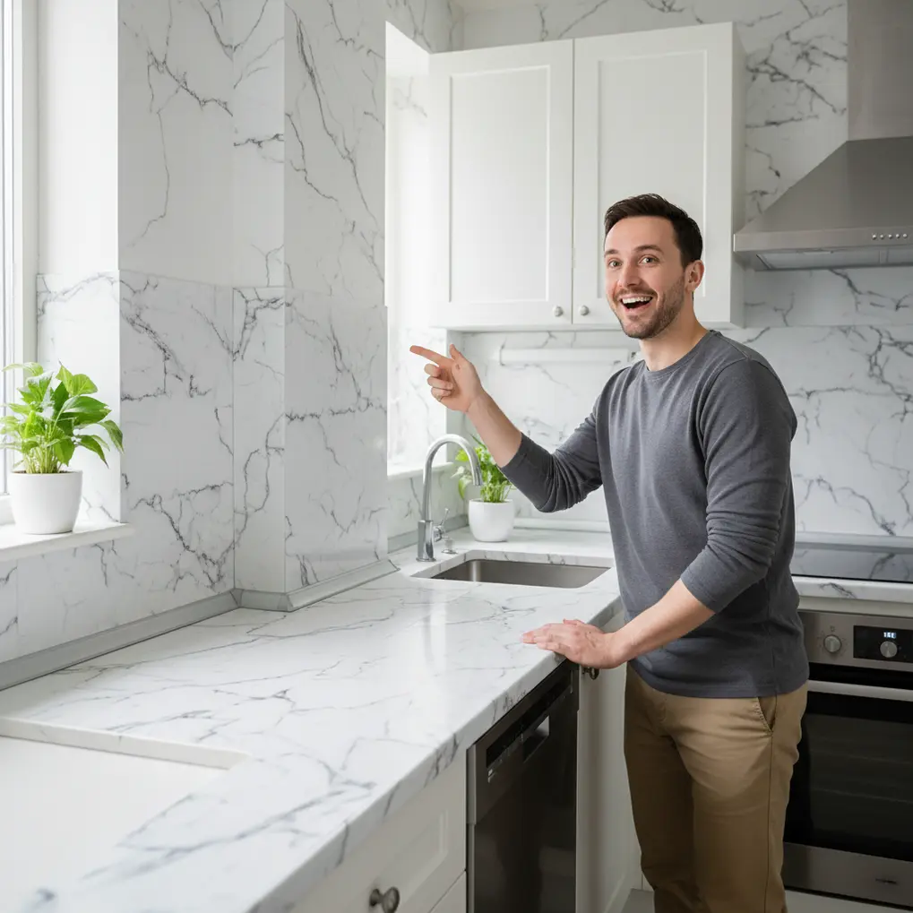 Compare isso com o custo de um revestimento de mármore tradicional, que exige pedreiros, argamassa, rejunte e dias de trabalho. A economia de tempo e dinheiro é inegável.